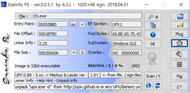 ExEinfo PE프로그램으로 보니 UPX로 패킹된것을 볼 수 있다.