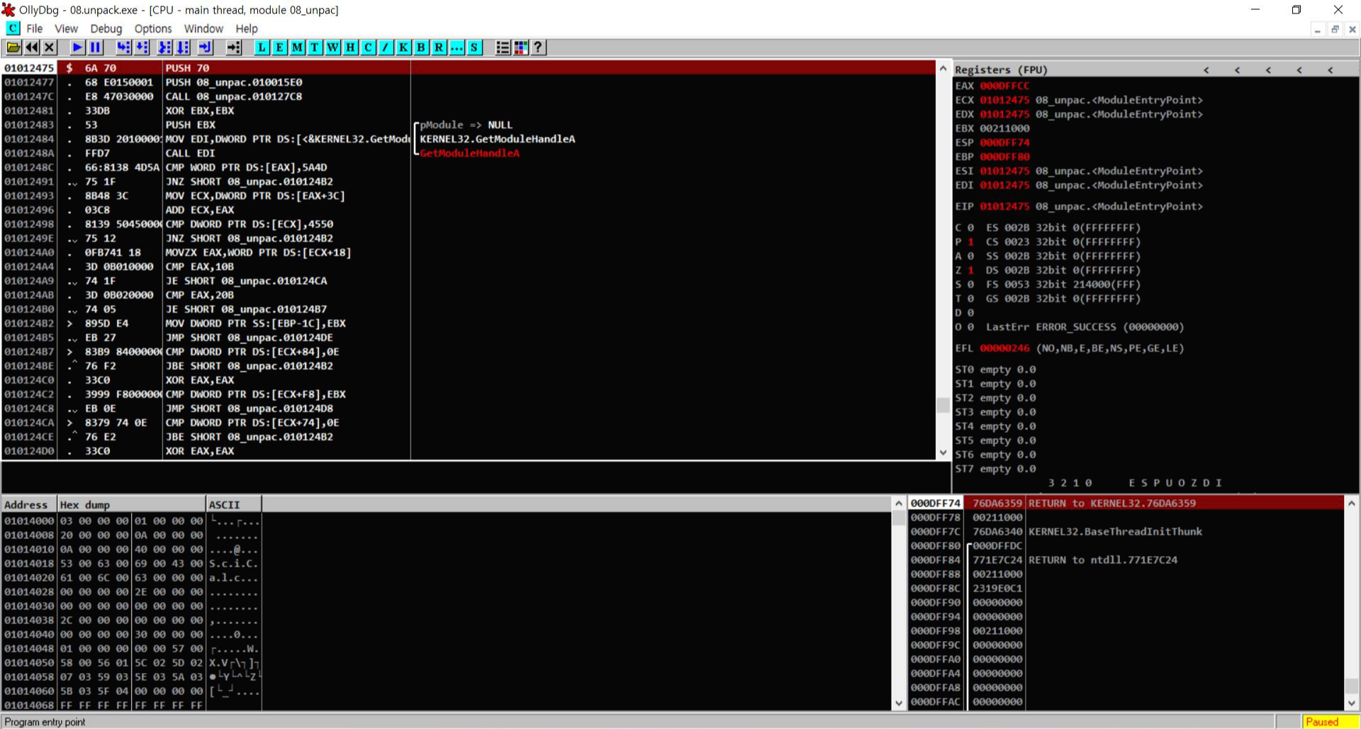 OEP를 구하라고 하였으니 패킹이 되어있을 가능성이 있다.
