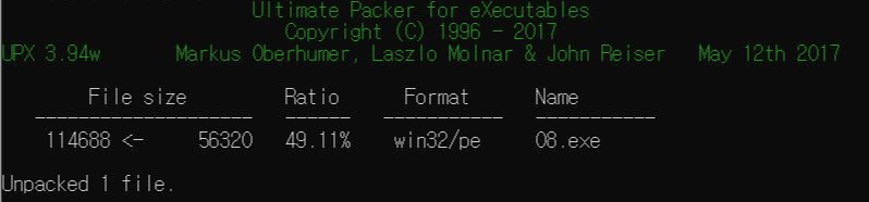 명령어를 사용하여 upx로 패킹된 파일을 unpack해보았다.
