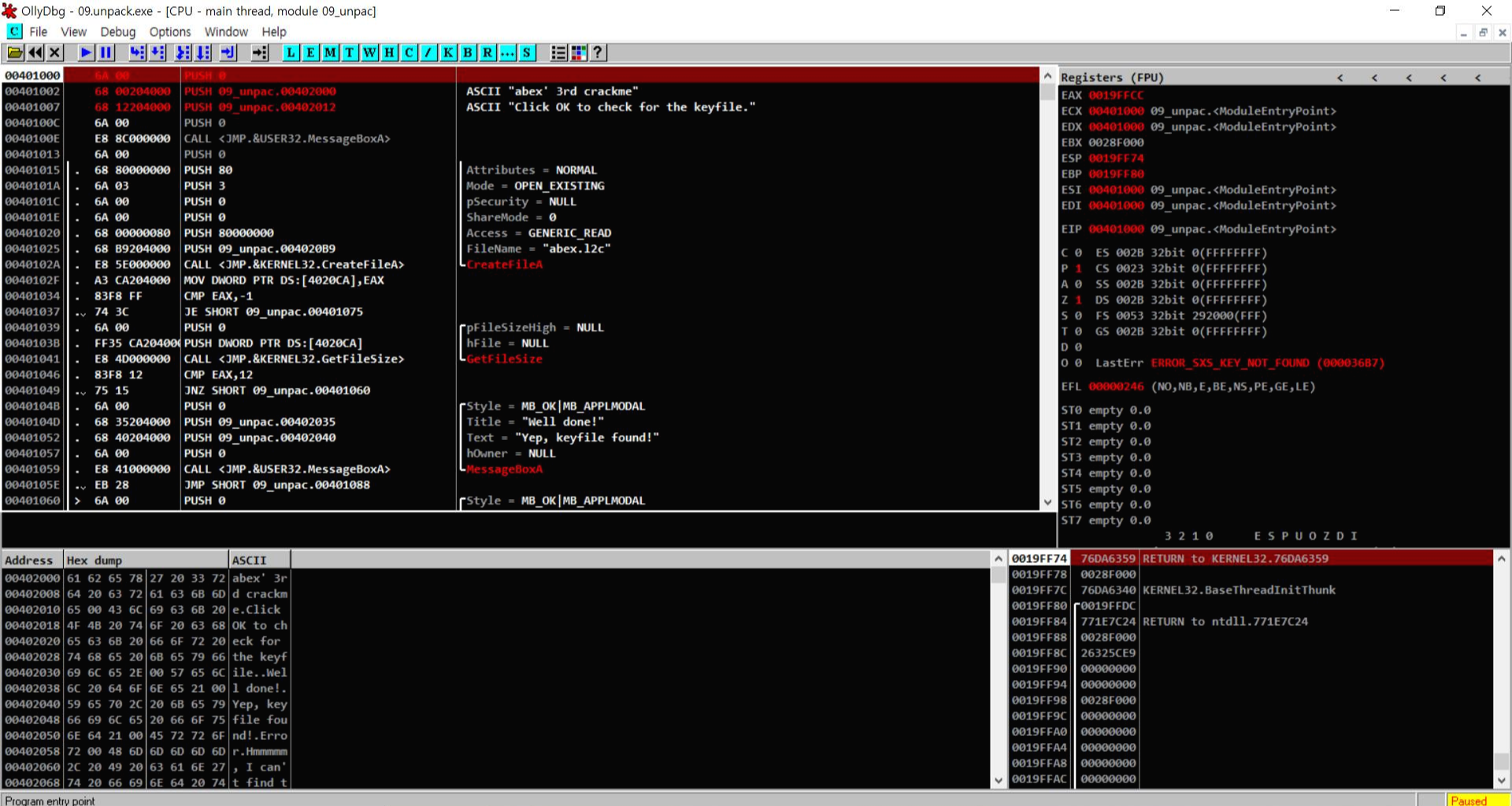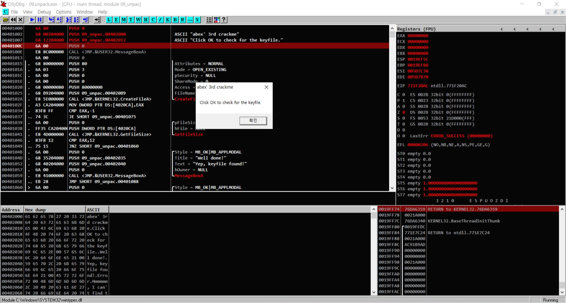 실행을 하여보니 keyfile을 찾아야하는 것 같지만 CodeEngn 문제가 단순히 StolenByte를 구하는 것이므로 keyfile은 찾지않겠다. StoleByte를 구하는 것이기 때문에 패킹이 되어있을 것 이다.