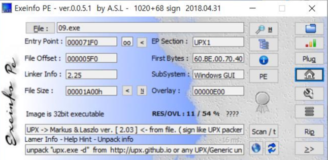 Exeinfo PE 프로그램으로 보니 UPX로 패킹 되어있는 것을 알 수 있다.