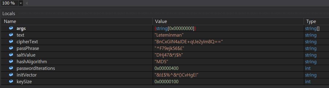 text값이 RijndaelSimple 알고리즘으로 암호화되고 복호화되는것같다.