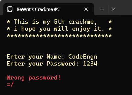 간단하게 Name, Password를 입력으로 받는다. CodeEngn일때, Password를 맞추면 된다.