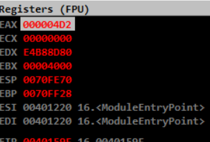 Name에는 CodeEngn을 넣고 Password에 1234를 넣고 실행해보니 EAX가 1234가 나오는것을 볼 수 있다.