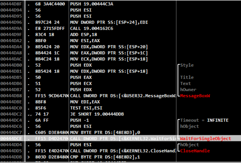 계속 진행하니 waitforsingleobject가 나오고 기다리다 끝난다.