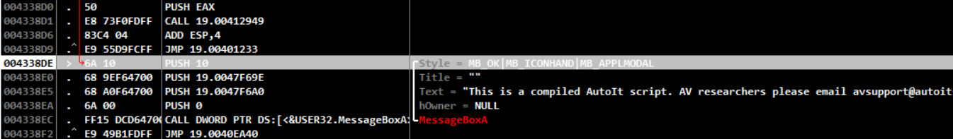 JNZ 에서 EAX가 0이 아니면, 004338DE로 점프하는것이다.