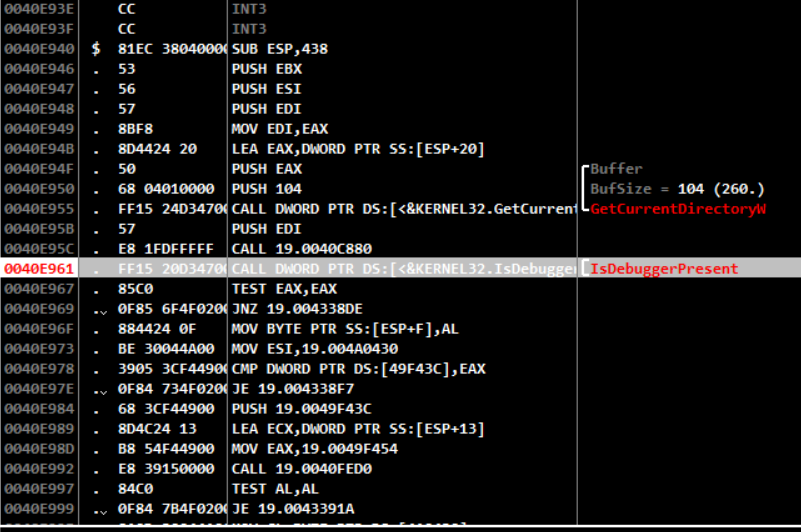 조금 파고드니까 isDebuggerPresent 라는 API가 나온다.