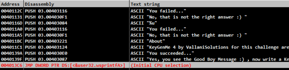 그런데 보면 str1이 str2랑 다르면 eax값이 0이 아니라 연산이 되서 실패구문이 나오고
