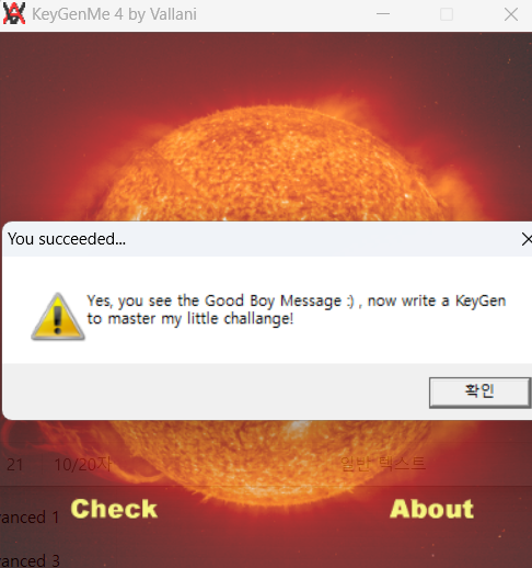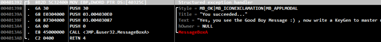 SEH로 성공구문을 출력하게 한다.