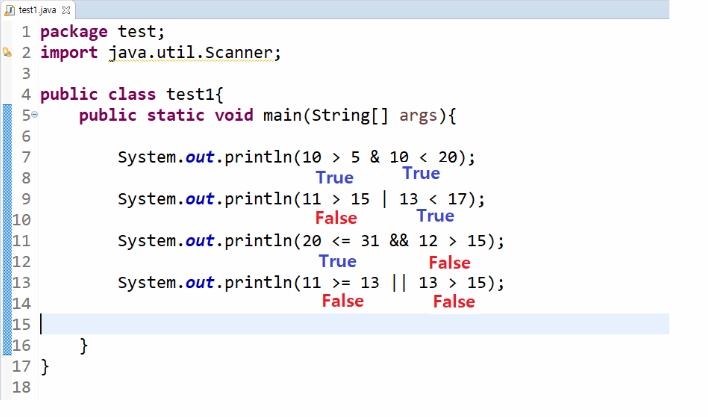 논리 연산자에는 (& , | , && , || , ) 들이 있다.