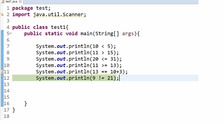 비교연산자에는 ( < , > , <= , >= , == , != ) 들이 있다.
